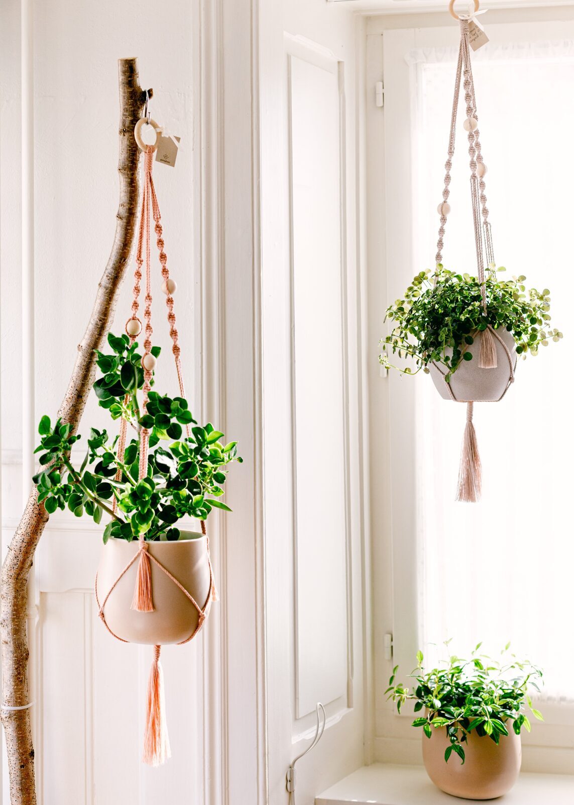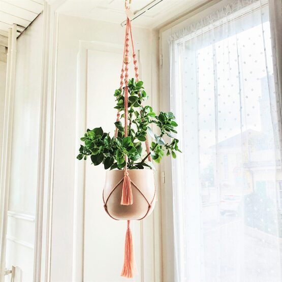 Die Makramee Ampel wird mit Topf, aber ohne Pflanze geliefert.