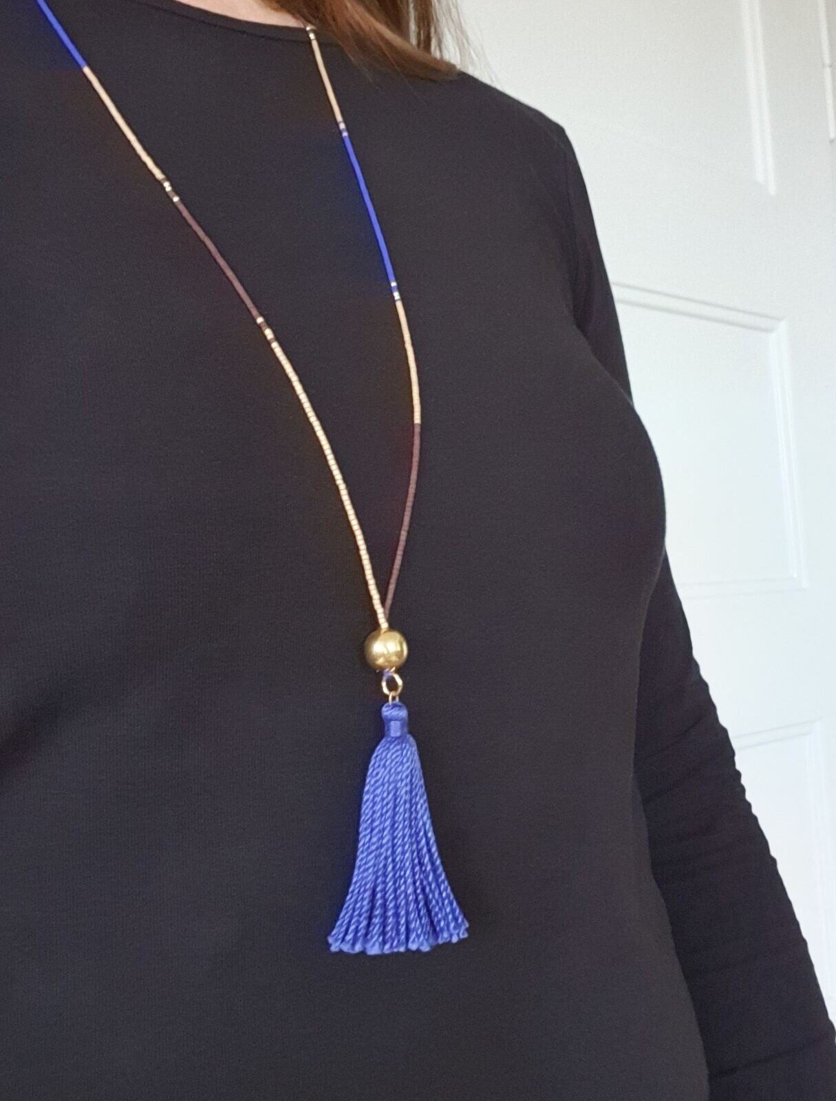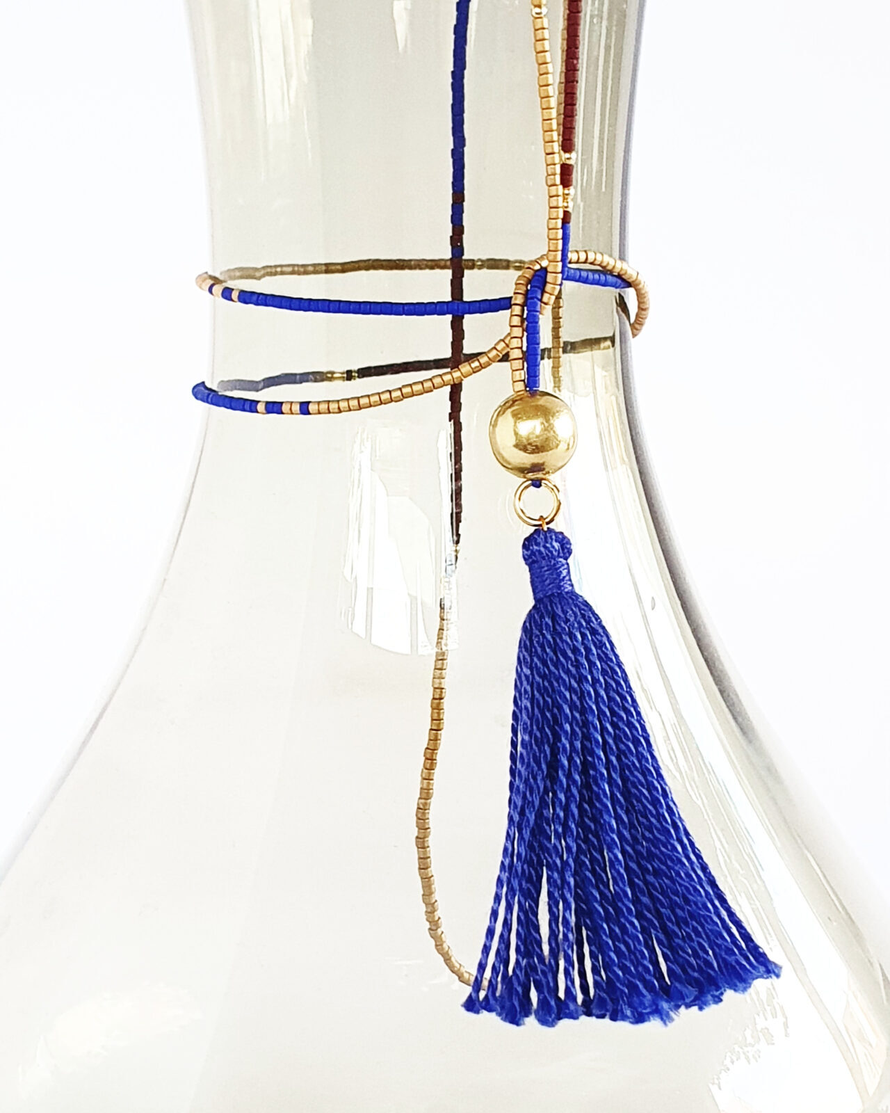 Material: Vergoldetes Silber, Glasperlen, Baumwollgarn