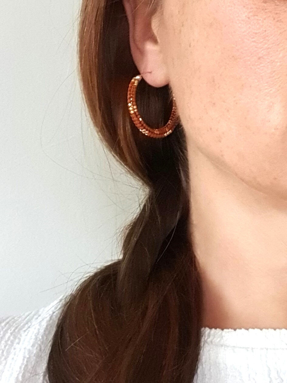 Creolen sind der Ohrschmuck Klassiker schlechthin. Im von Hand geknüpften "Glasperlenkleid" sind die Creolen "Josefine" jedoch ein ganz besonderer Hingucker und lassen dich in jeder Runde erstrahlen.